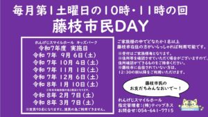 毎月第一土曜日(10時・11時の回)は藤枝市民DAYとなっております。