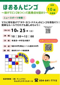岡山県津山市発祥のニュースポーツ「ほおるんビンゴ」をスマイルホール・スポーツゾーンにて開催します!開催日時 10月25日(土曜日) 10:30~12:00