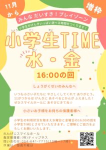 小学生の利用条件を鑑みて金曜日に加えて、【毎週水曜日16時の回】も小学生TIMEとさせていただきます。