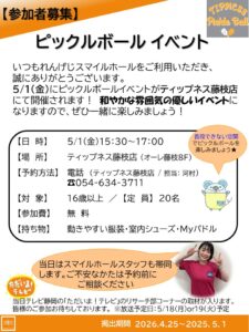 今回はティップネス藤枝店で無料体験会を行います。